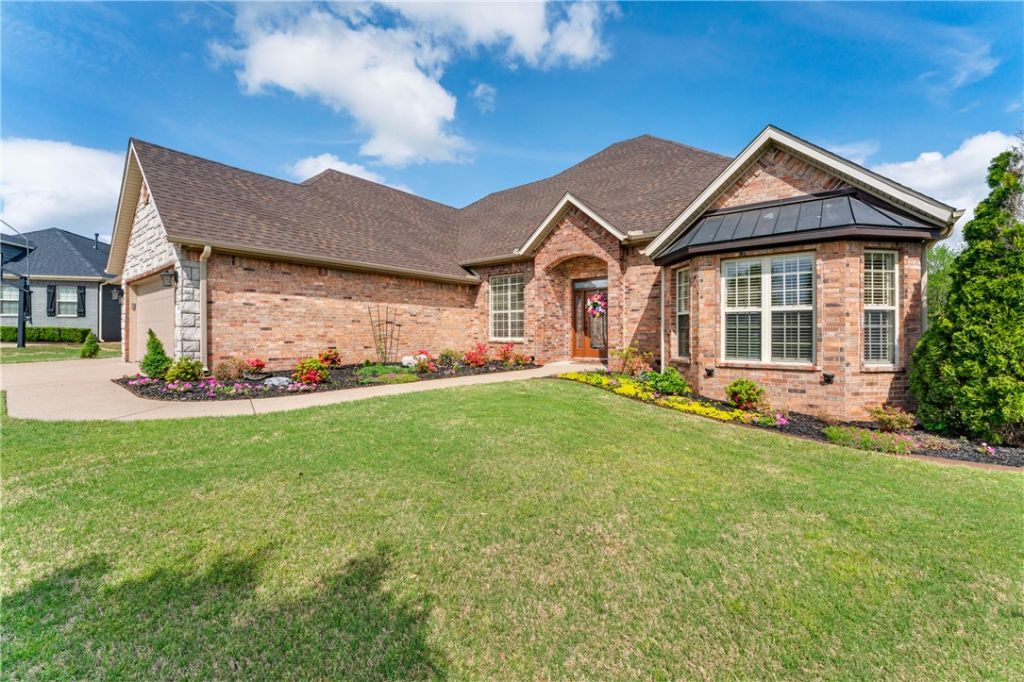 This exceptional residence on Freedom Pl offers refined living in one of Springdale's most desirable areas. Showcasing timeless curb appeal, the home features elegant exterior accents, a spacious three-car garage, and an expansive driveway that creates a grand first impression. Inside, soaring ceilings, luxury vinyl flooring with manufactured hardwood and tile underneath, crown molding, and abundant natural light. Arched entryways and sophisticated architectural details lead into inviting living spaces ideal for both everyday comfort and entertaining. A welcoming formal sitting area adds charm and versatility, while the layout provides seamless flow throughout the home. Every detail reflects quality craftsmanship and pride of ownership, creating a warm yet upscale atmosphere. This property offers the perfect combination of elegance, functionality, and location. This stunning residence delivers comfort, style, and lasting value.